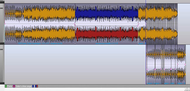 En la imagen vemos un solo fragmento repetido multiples veces, con un volumen mas atenuado… con lo que queda mas disimulado teniendo en cuenta que quede todo cuadrado en el ritmo.